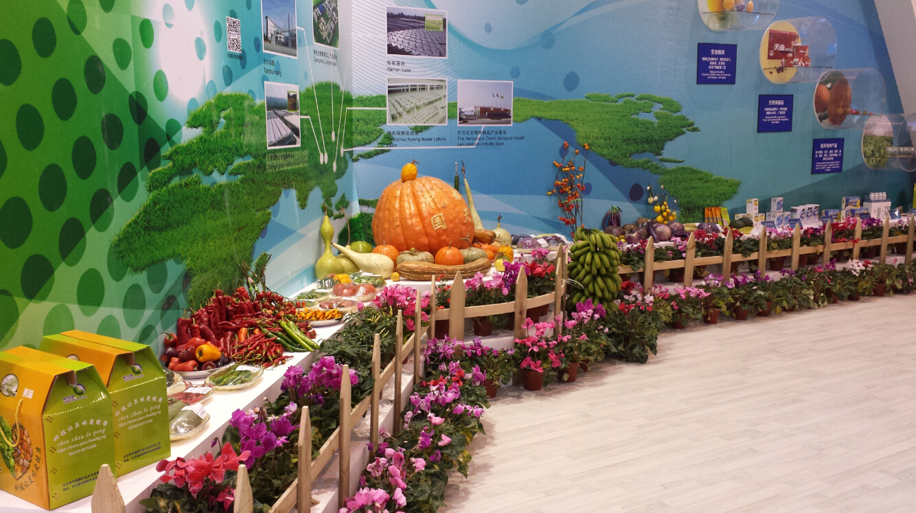 航天技术应用及服务产业展区集中展示了近年来卫星应用、节能环保、能源装备、先进材料、新能源、信息技术、空间生物等领域取得的科技成果。 在航展现场,一个刻有“中国航天”四个大字的巨型南瓜引起了观众的注意。面对一些形状新奇的茄子、辣椒等蔬菜,大家纷纷拍照的同时,不断有人要伸手去摸。现场工作人员稍显无奈:“我一直都在提醒大家不要摸,这里的所有展品都是真的!” 这些展品都属于航天工程育种的产物。据展位负责人介绍,空间生物作为航天技术应用产业的重点发展板块之一,正由技术研究阶段逐步走向产业化、市场化,一批源于航天育种的太空农产品及航天生物保健品已步入平常百姓家庭。本次参展的空间生物产品,不仅有太空蔬菜、太空花卉、太空种子,还包括以天曲、辅酶Q10为代表的航天生物保健品及以航力片、宇航口服液为代表的航天医学民用产品,令参观者大饱眼福,赞叹不已。